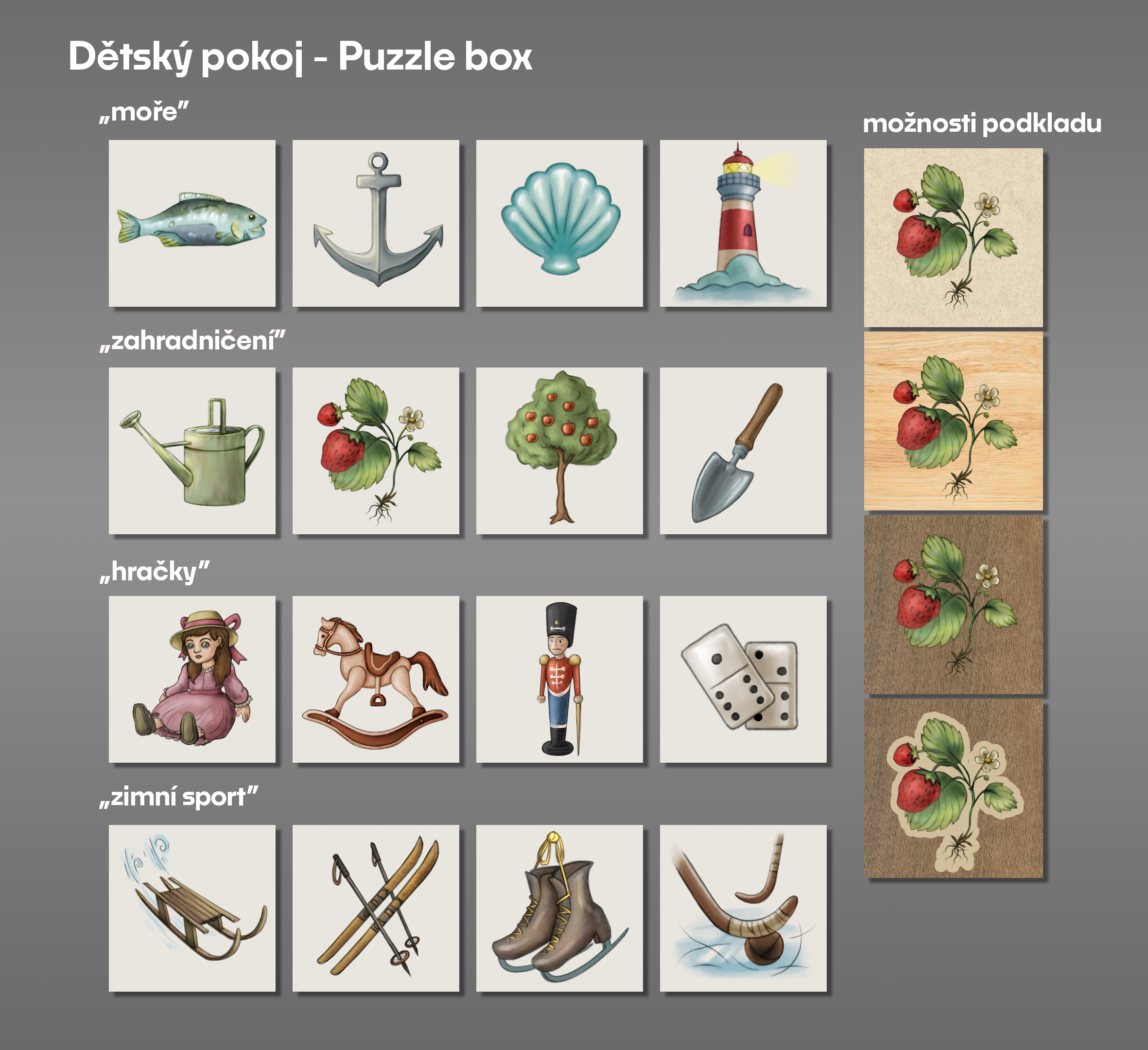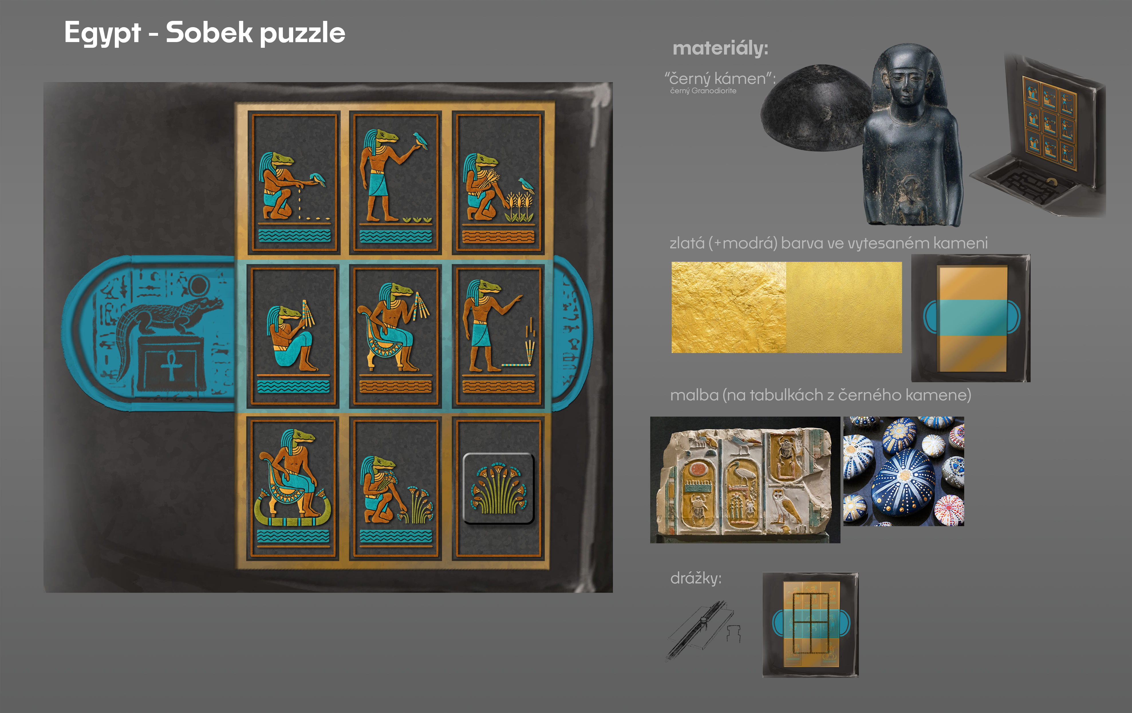 I did mainly polishing and testing of already created and mostly settled puzzle design, and later worked on it's concept art.